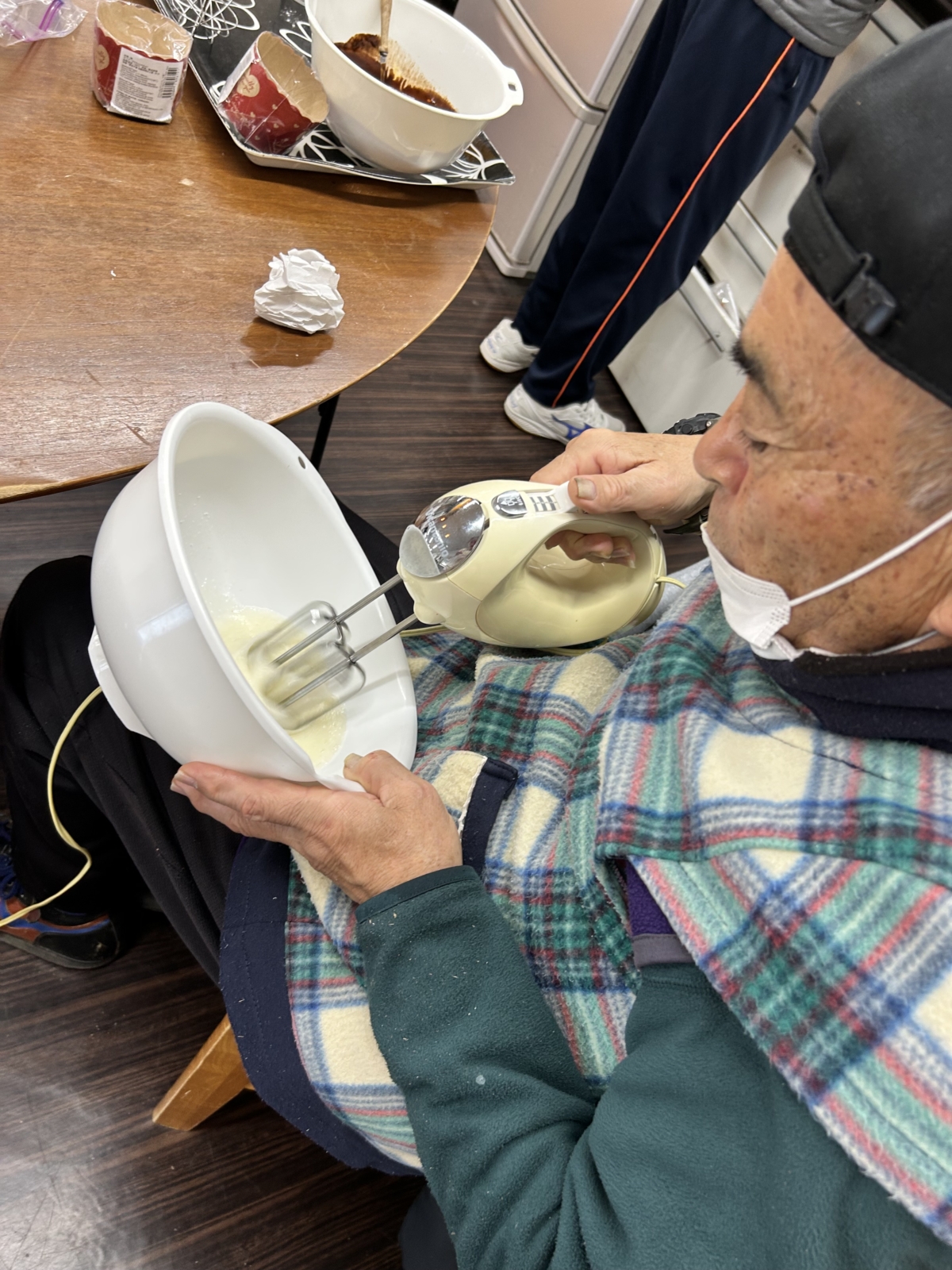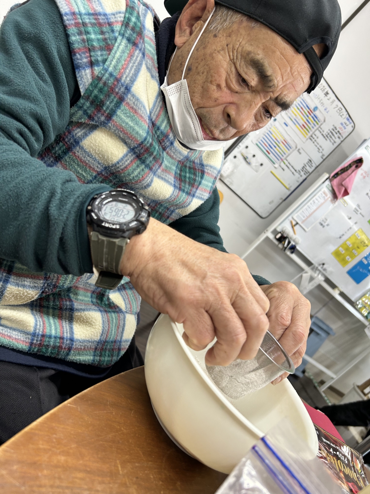 材料を量る手つき、混ぜる動き、手順を考える姿は手早くスタッフもびっくりです💦